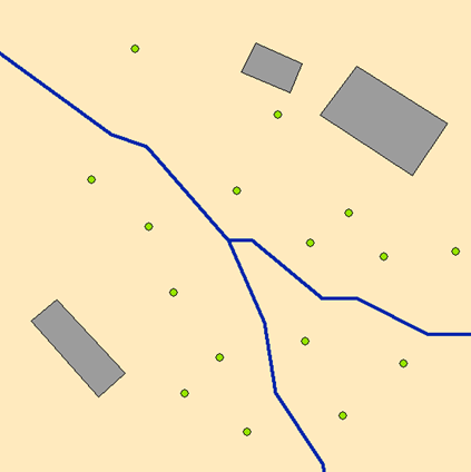 The images below show the effect of buffer and dissolve on points, polylines, and polygons.