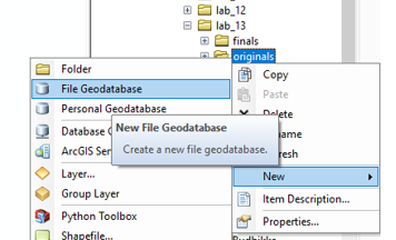 - Right-click the file folder in the Catalog tree where you want to create the file geodatabase