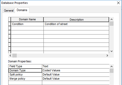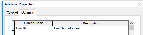 - Click the first empty field under Domain Name and type Condition for the new domain. Press the Tab key or click the new domain's description field, and type Condition of street