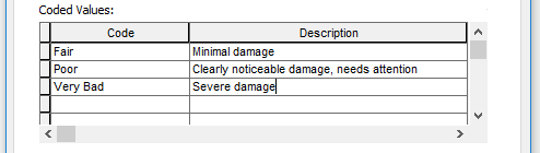 - Press the Tab key or click the coded value's Description field. Type Minimal damage as the user-friendly description for this coded value