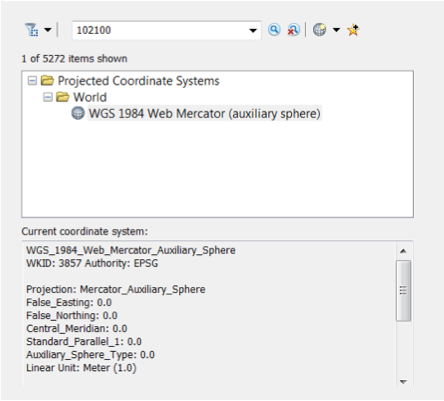 - When creating this feature class, you need to choose a coordinate system. Coordinate systems allow your features to be projected properly and accurately on a map, making the features appear in the correct locations. For this exercise, choose WGS 1984 Web Mercator (auxiliary sphere)