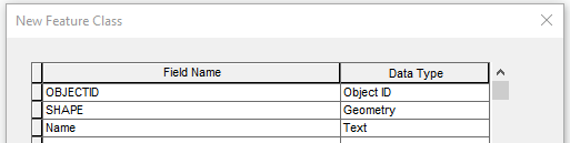 Next, you will create the feature class to hold the collected information. Feature classes are essentially containers for information, where the pieces of information share similar characteristics, whether that be their geometry or their attributes.