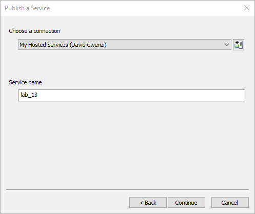 - On the Publish a Service dialog box, click the drop-down arrow and choose My Hosted Services (Your name)