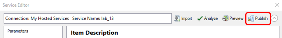 - On the Service Editor toolbar, click Publish