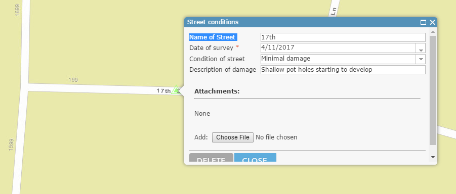 You may be wondering why we chose point type for streets, which are line features. The reason for this is that we need to record each damage incidence at the exact location.