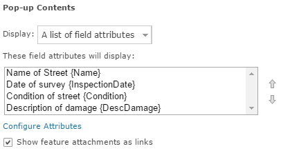 - Farther down the Configure Pop-up panel, in the Pop-up Contents section, click Configure Attributes.