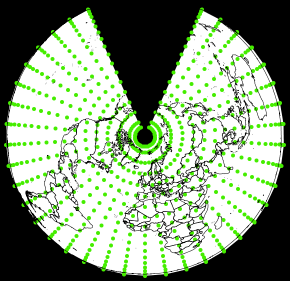 The images below are from the "Projection Explorer" tool in BlueSpray which we will use in a lab in the near future. This tool shows the relative amount of distortion caused by each projection. Areas with a lot of distortion are color-coded in red while those with little are color-coded in green.