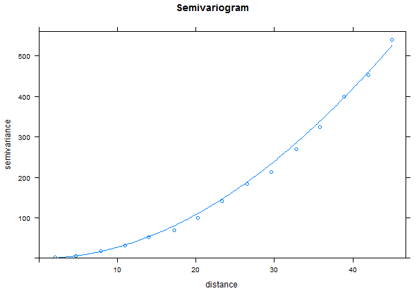 Lets fit a variogram model to this data to examine the results.